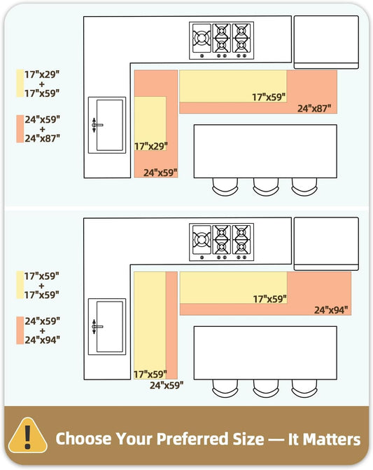 Color G Kitchen Rugs, Kitchen Rug Set 2 Piece Kitchen Runner Rug Kitchen Floor Mat, Cushioned anti Fatigue Kitchen Mat Non Skid Waterproof Comfort Standing Kitchen Rug, 17"X29"+17"X59", Grey