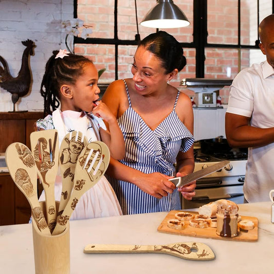 5 PCS Star War Burned Wooden Spoons Cooking Organic Spoons Turners Carved Spatulas Non-Stick for Cookware Kitchen Gadgets - Premium Quality Gifts for Housewarming and Wedding